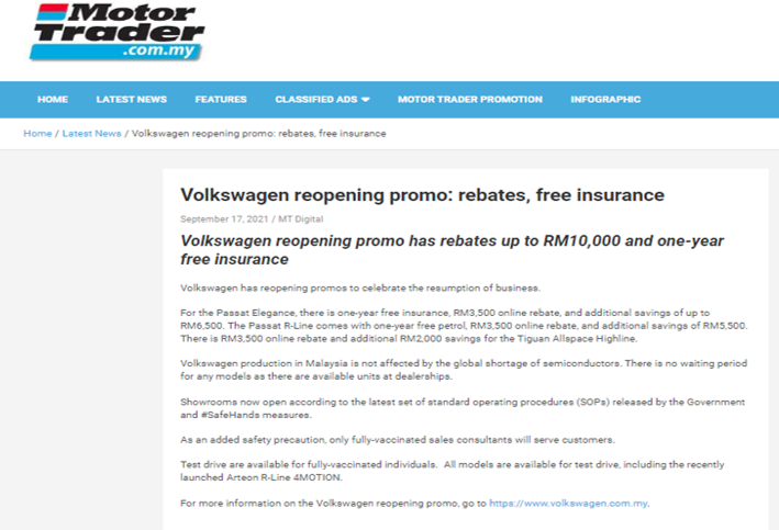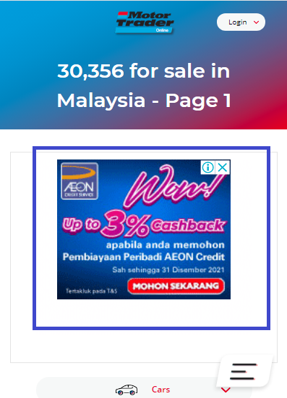 Display at the MotorTrader.Com.My Facebook Posting Advert